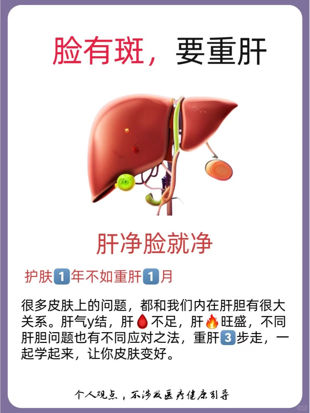 - 情绪与色斑的恶性循环:肝斑形成后会影响颜值和心情,导致情绪更差,进一步加重肝郁,形成 “情绪差→肝郁→斑更重→情绪更差” 的闭环,让色斑越来越顽固。