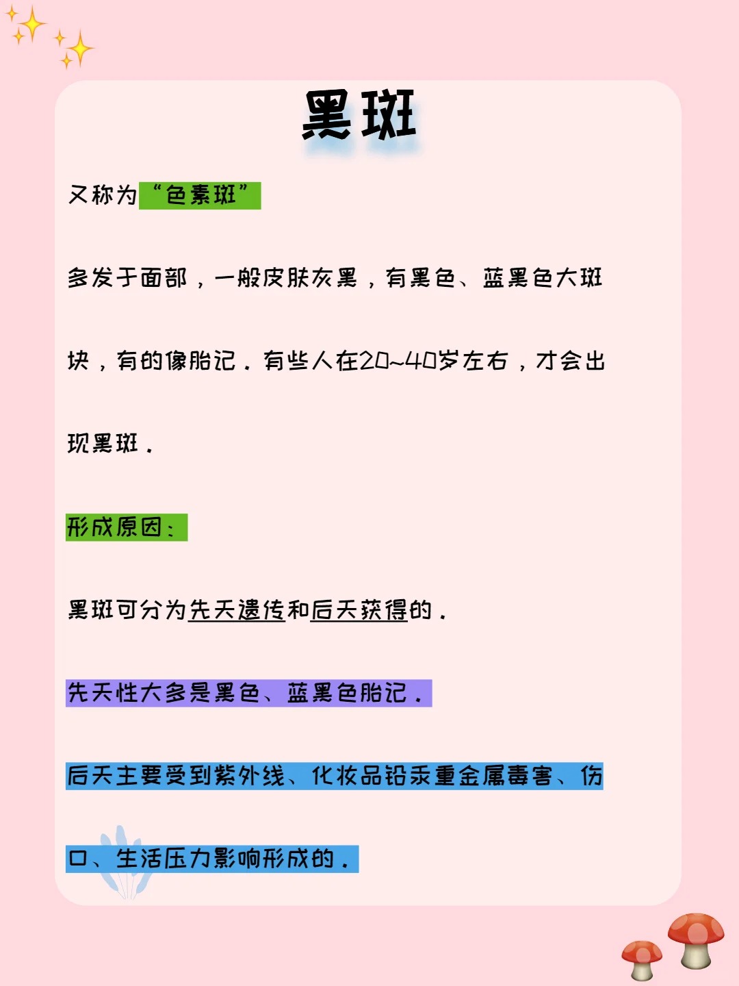 黄褐斑等顽固性黑斑多与内分泌波动、激素变化有关,这类黑斑常随生理状态变化,呈现 “时深时浅” 的特点,尤其困扰女性群体。