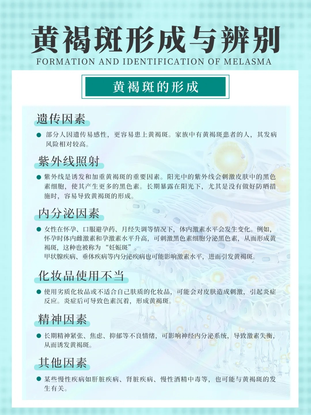 很多人发现脸颊、颧骨长出片状褐色斑块时,都会疑惑 “为什么会突然长黄褐斑”,其实答案很明确:长黄褐斑的核心原因是激素波动(尤其是雌激素失衡),再加上紫外线刺激、生活习惯紊乱、皮肤屏障受损共同作用,导致黑素细胞异常活跃,黑素大量沉积形成色斑。黄褐斑不是 “单一原因导致的”,而是内外因素叠加的结果,搞懂这些成因,才能更精准地预防和淡化。