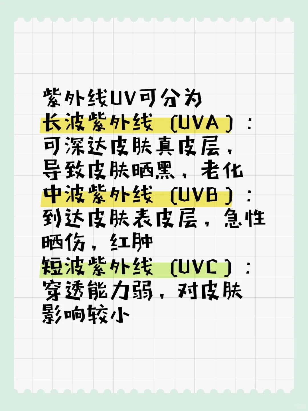 不同短波辐射的波长和穿透能力不同,对皮肤的影响差异显著: