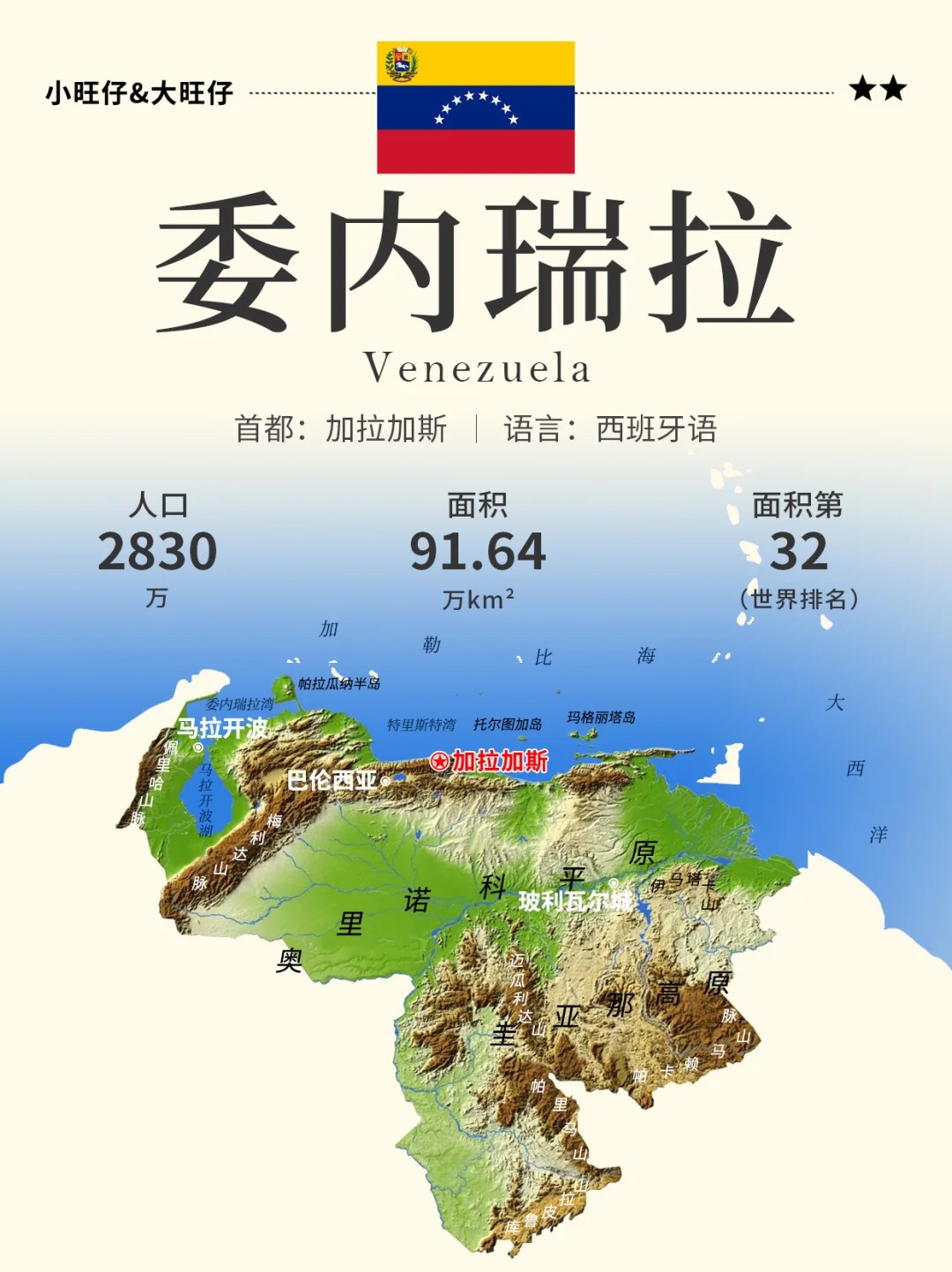 委内瑞拉位于哥伦比亚的东北部,其领土范围大致在北纬 0 度 20 分至北纬 12 度 25 分之间。相比哥伦比亚,委内瑞拉整体纬度稍高。