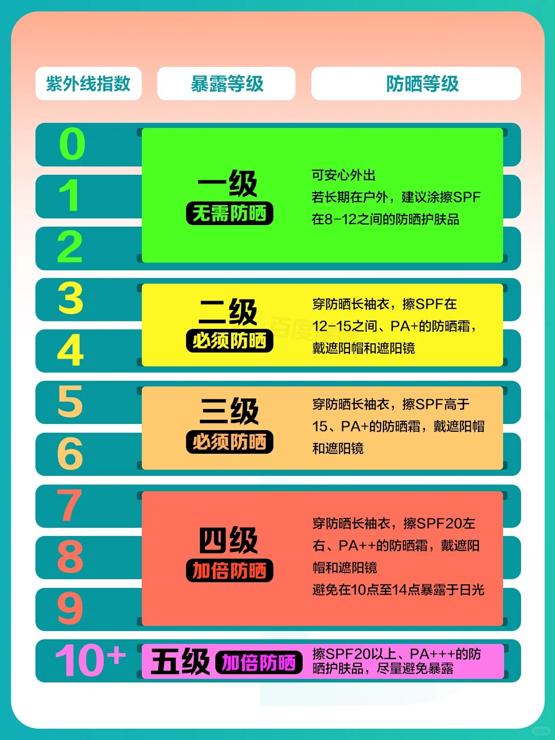 - 海拔一千米:晴天正午的紫外线指数通常为 5-7(中高强度),此时皮肤暴露 30-45 分钟就可能出现轻微红斑,敏感肌和白皮肤人群风险更高。