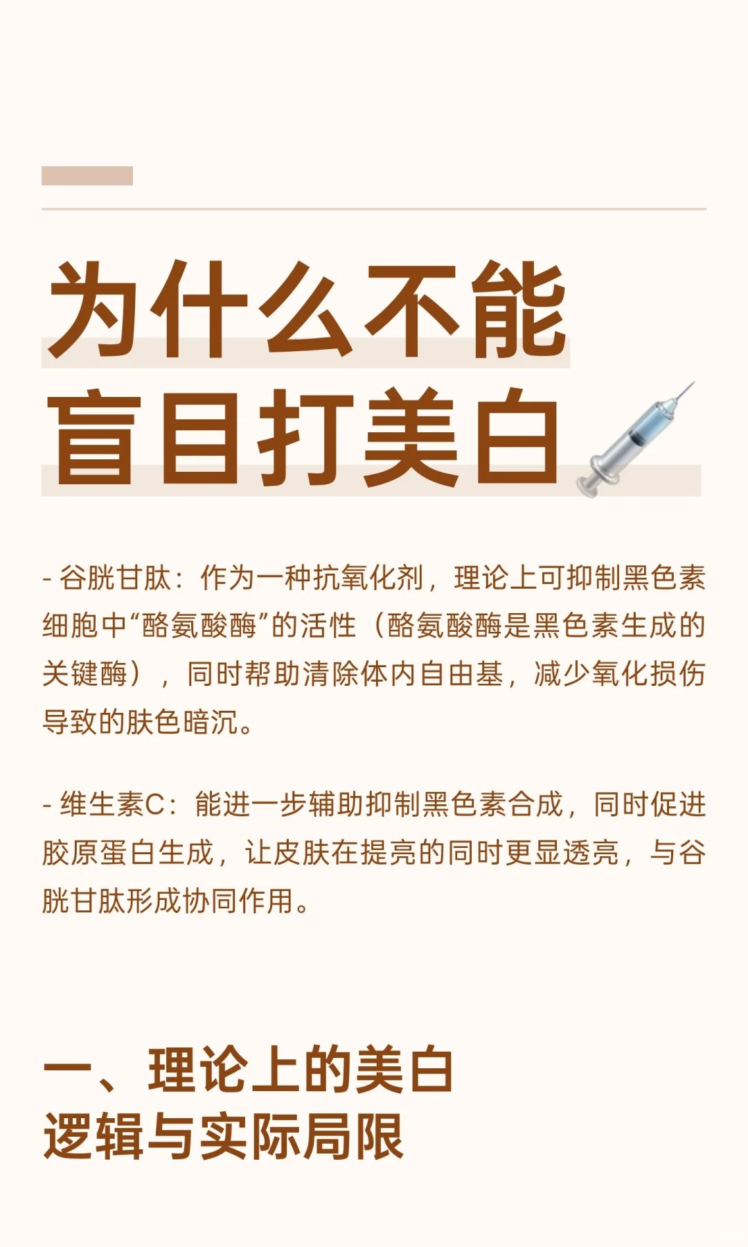 真正的美白,从来不需要“赌健康”。与其相信“注射速效白”,不如回归科学:做好硬防晒(帽子、口罩+物理防晒)、用合规的美白护肤品(烟酰胺、377等成分)、保持规律作息和均衡饮食。这些方法虽然慢,但白得均匀、稳定,更重要的是——安全无风险。