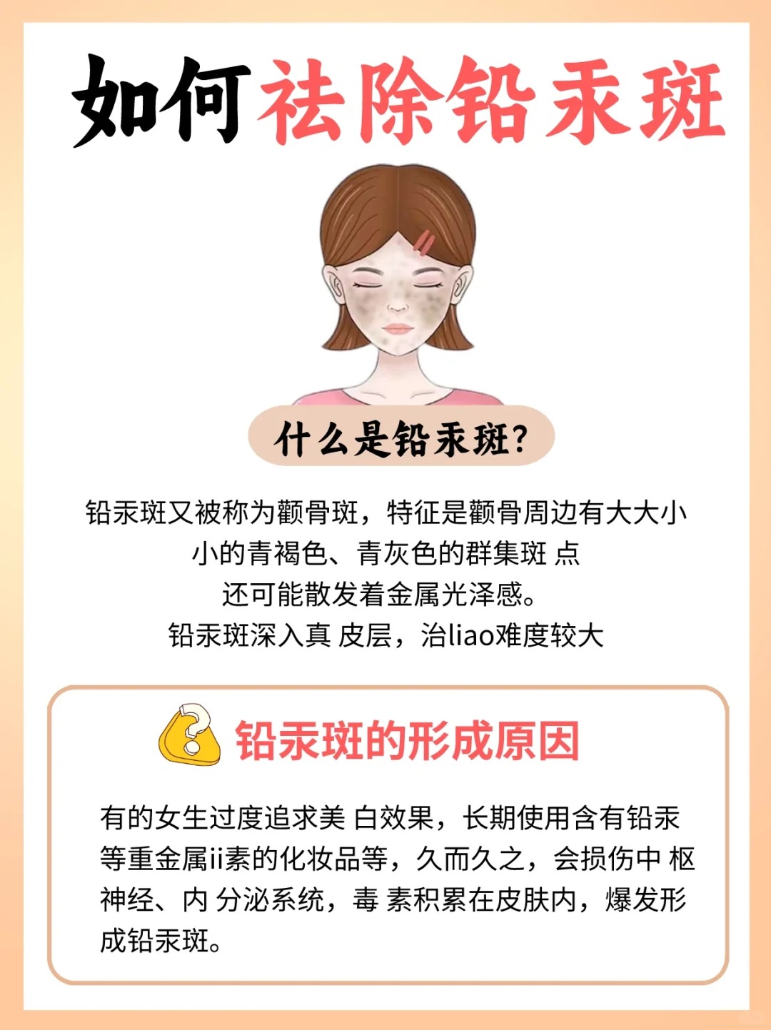- 但要注意:铅汞斑的淡化是 “慢过程”,即使是医生治疗,也需要 3-6 个月甚至更久,别指望 “一次见效”。