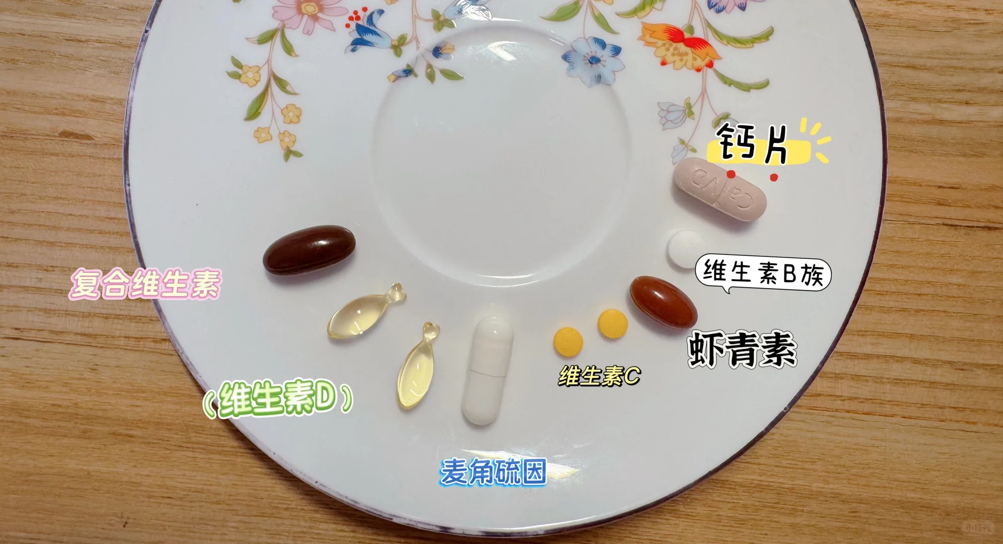 常用钙片的成分和作用机制聚焦于钙质补充,与抗氧化成分代谢无重叠: