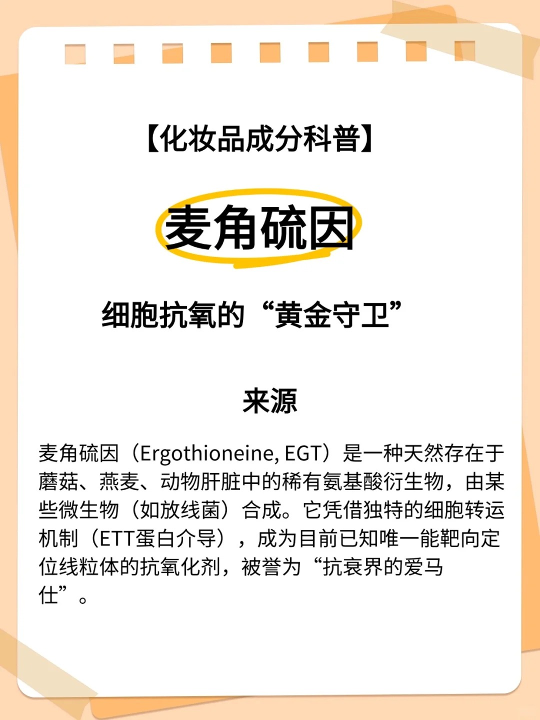 - 早期俗称的由来:“麦角硫因” 最初因从麦角菌(一种寄生真菌)中首次分离发现而得名,属于 “来源型命名”,简单易记但无法反映成分本质,后来在红球藻、蘑菇等生物中也发现了这种成分,来源命名的局限性逐渐显现。