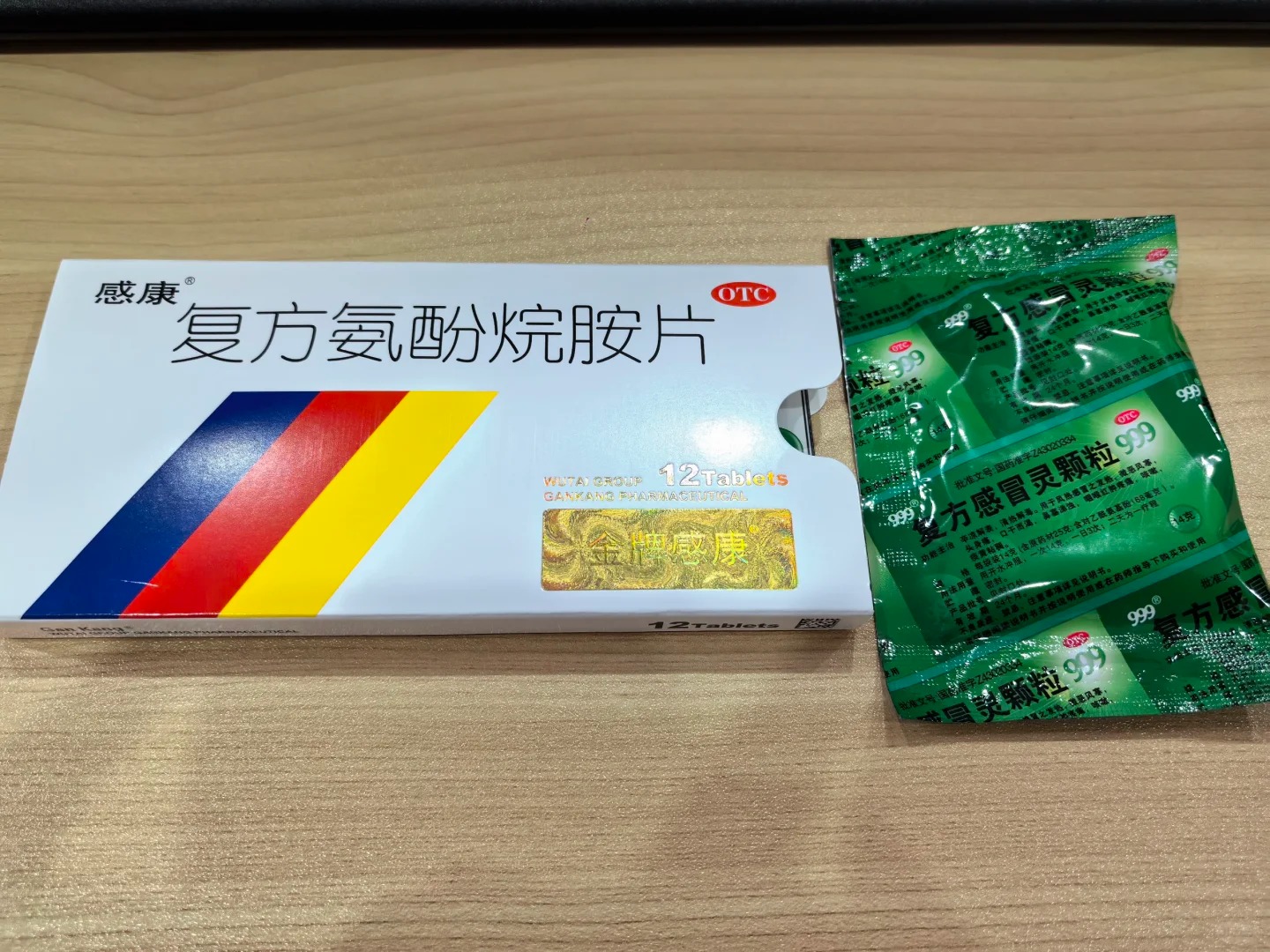 - 先吃复方氨酚烷胺片:按说明书剂量(通常每次 1 片,每日 2 次)服用,缓解感冒症状;