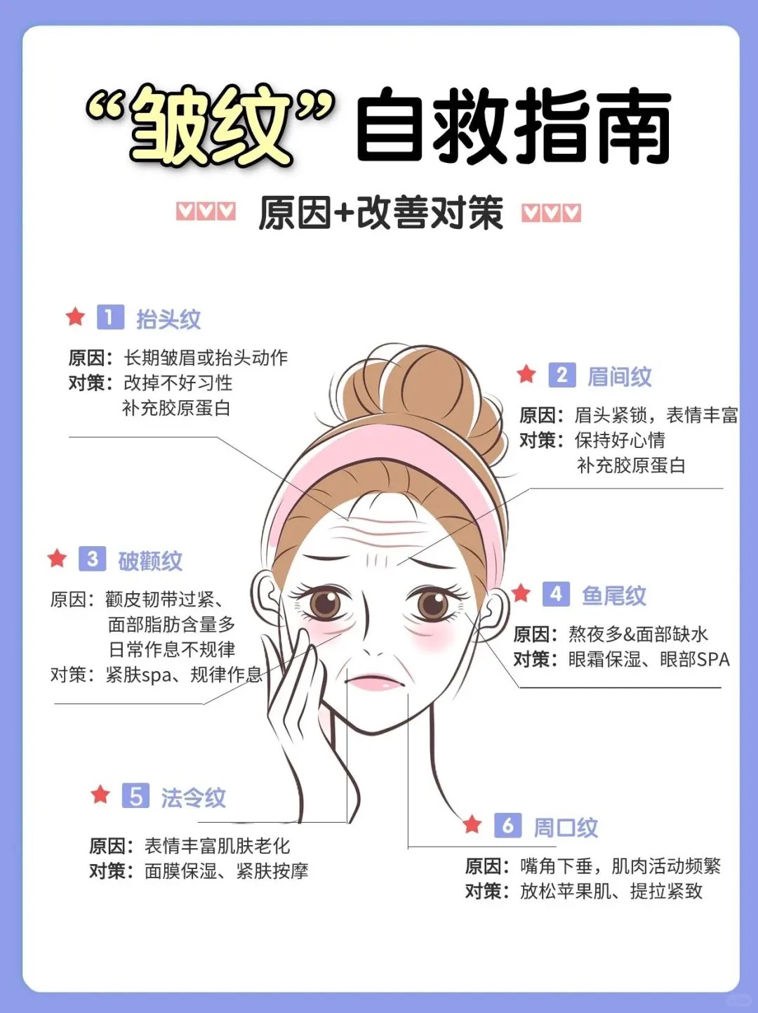 (3)额头皱纹:表情习惯 + 胶原流失,靠 “表情管理 + 抗皱成分”