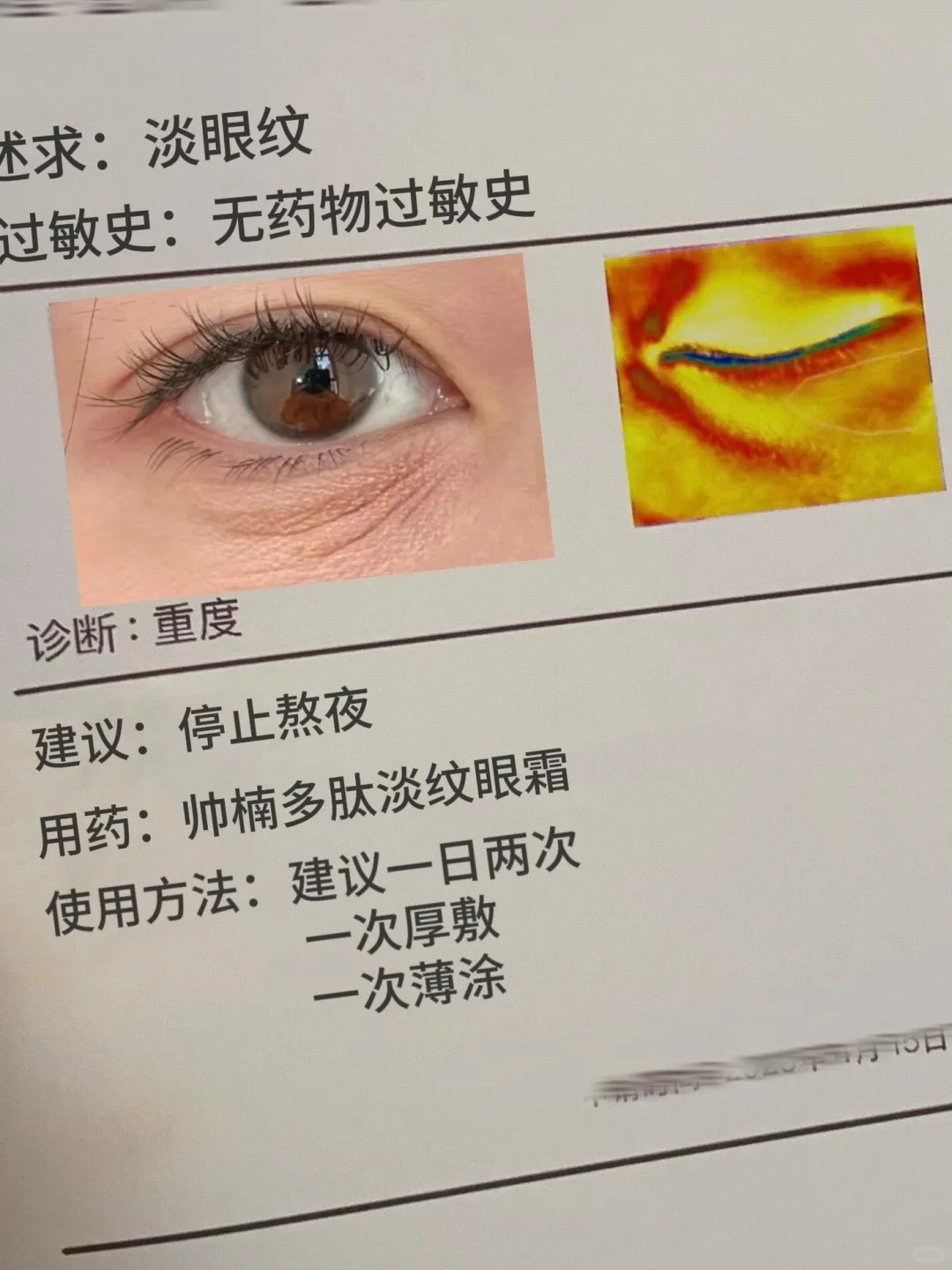 效果:2 周干纹去掉,眼周水润不卡粉,再也不用为 “笑起来眼尾卡纹” 烦恼。