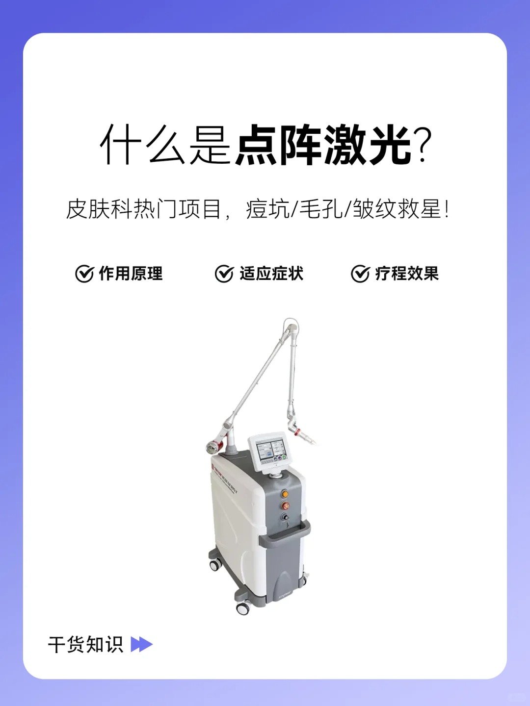 - 原理:二氧化碳激光能在皮肤表层打出微小的 “孔”,刺激皮肤启动修复机制,在修复过程中生成新的表皮细胞和胶原,替换掉有皱纹的旧皮肤;同时真皮层的胶原再生,能填补纹路的轻微凹陷,让皮肤变平整;