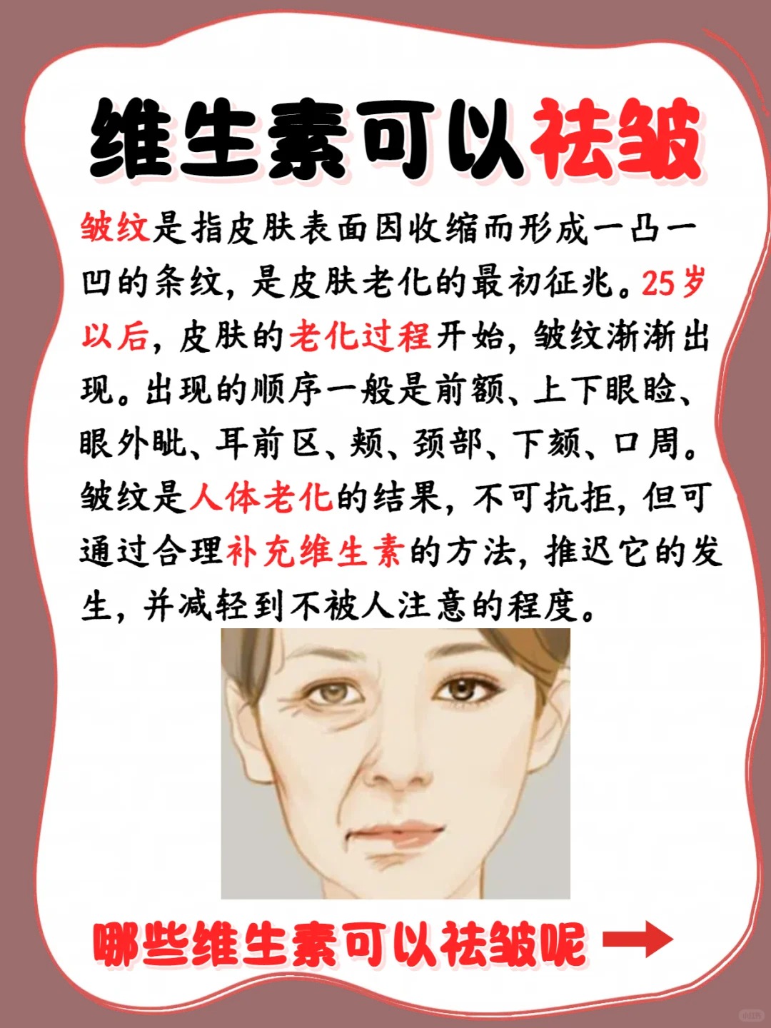 如果已经有轻度真性皱纹(不笑时隐约可见),维生素 E 没法让它淡化,但能靠抗氧化,减少皱纹加重的速度,相当于 “给皱纹踩刹车”。