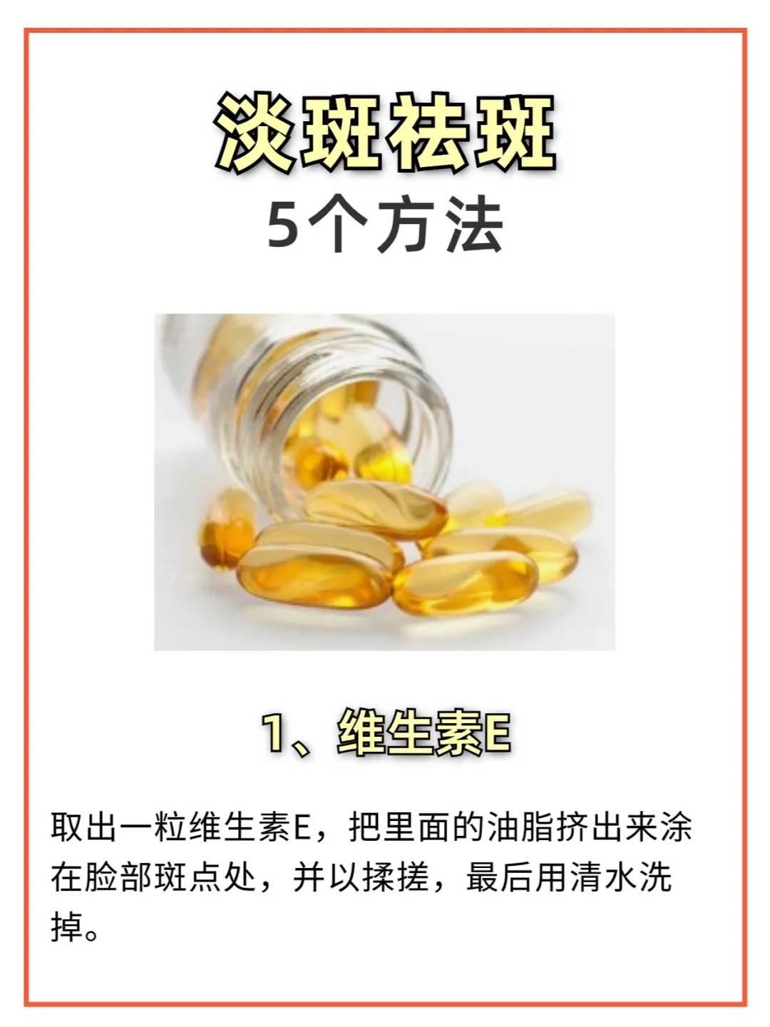 - 原理:维 E 的抗氧化作用能减少自由基对黑色素的刺激,避免晒斑进一步加深;同时它的保湿作用能改善皮肤干燥,让晒斑区域看起来更透亮,间接让色斑 “显浅”;但它没法抑制黑色素生成,所以不能完全去掉晒斑。