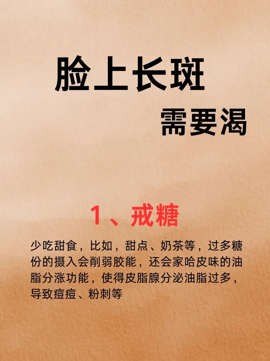 每天喝 1 碗红豆薏米粥(补气血,辅助稳定激素),每周 2 次吃清蒸鲈鱼(含优质蛋白,促进皮肤修复),避免高糖、辛辣食物(如奶茶、辣椒),高糖会加重皮肤炎症,刺激黑素生成。