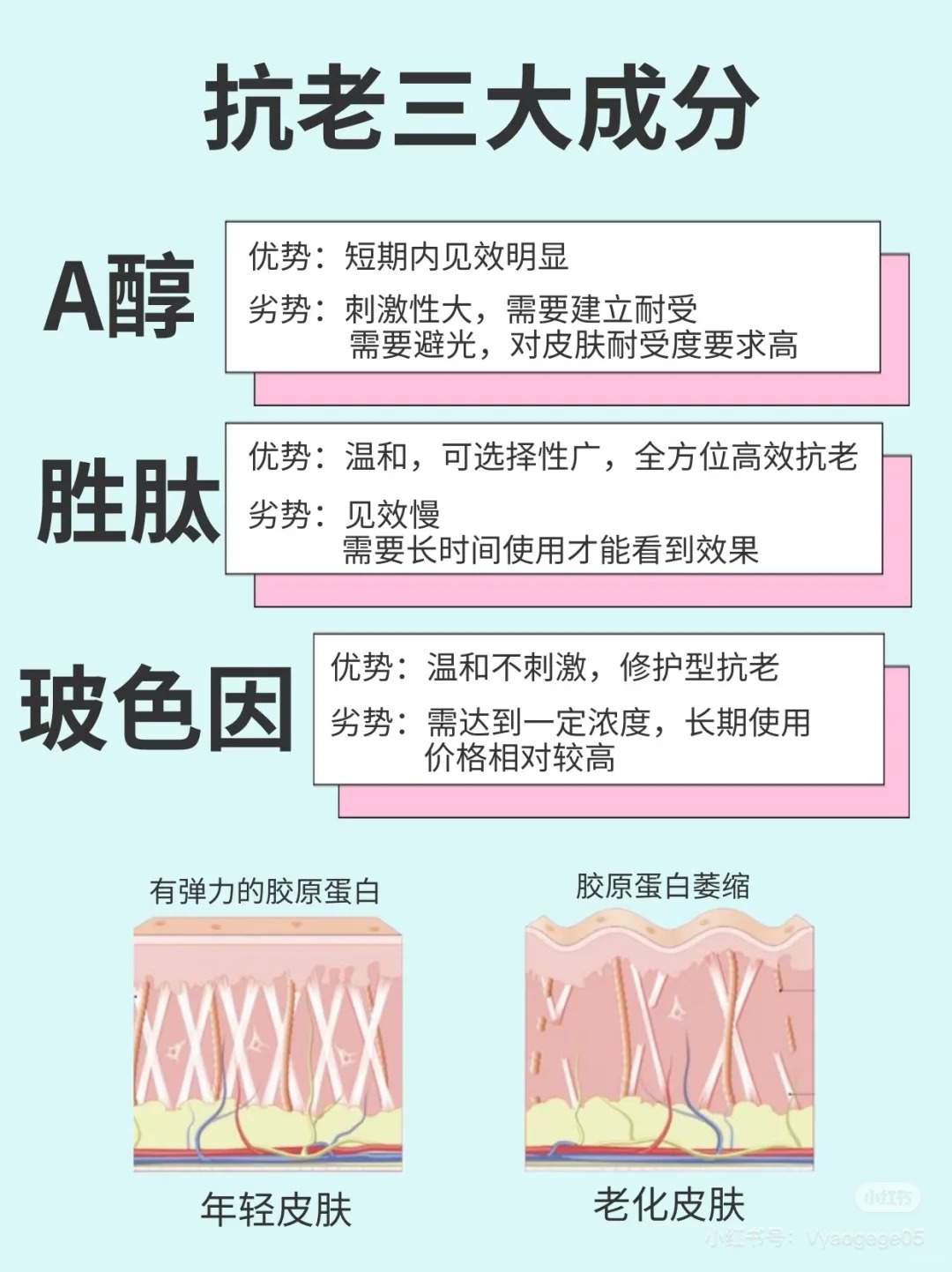 想知道哪个更适合你,首先要明白它们 “如何让皮肤抗老”—— 原理不同,直接导致效果侧重、刺激度和适用场景完全不同: