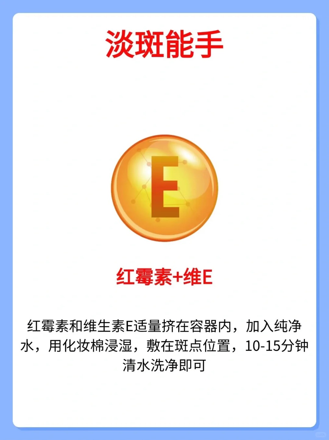 1. 外用搭配:先祛斑产品,后维生素 E(所有肤质通用)
