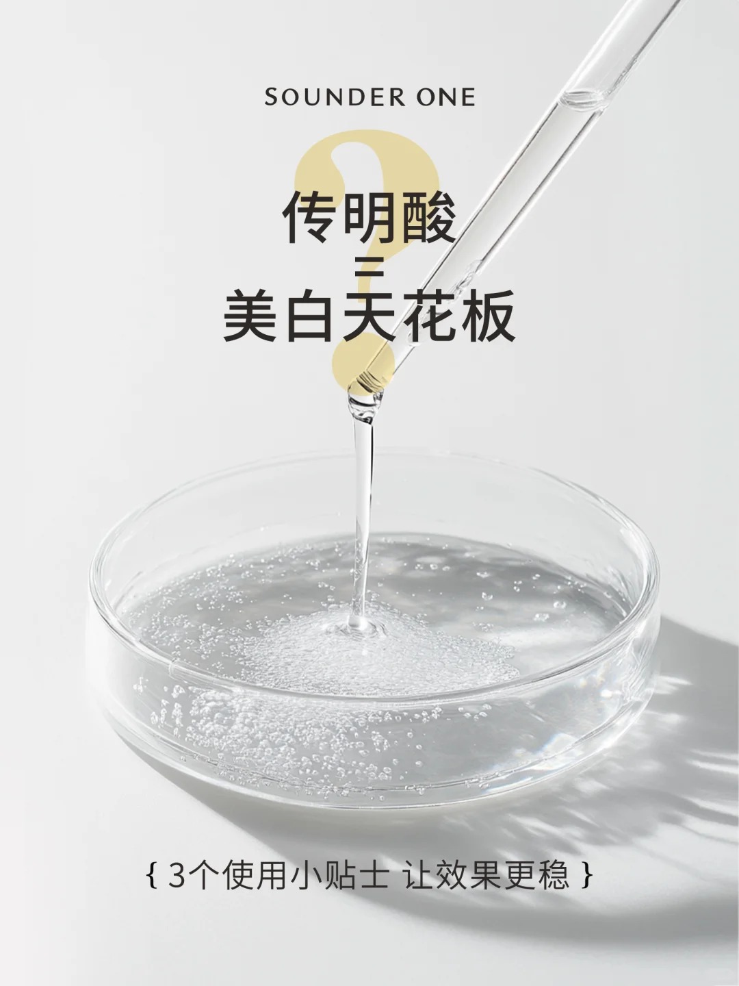 传明酸是淡色沉界的 “温和派”,核心作用是 “控色 + 抗炎”: