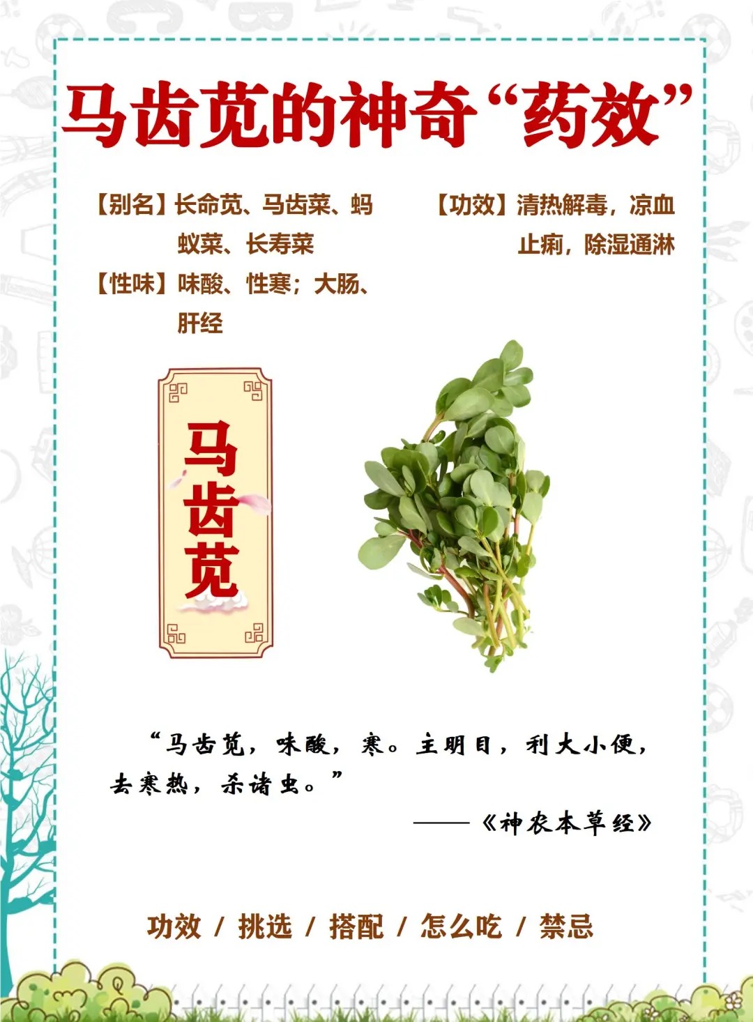叶子的钾含量高达 1500mg/100g,是香蕉的 4 倍!夏天中暑、拉肚子时,吃点马齿苋叶,能补钾调电解质,缓解乏力、心慌;钙含量也有 85mg/100g,比牛奶还高(牛奶约 100mg/100g),老人、小孩吃能辅助补钙,而且植物钙更容易吸收,不会像牛奶那样胀气。