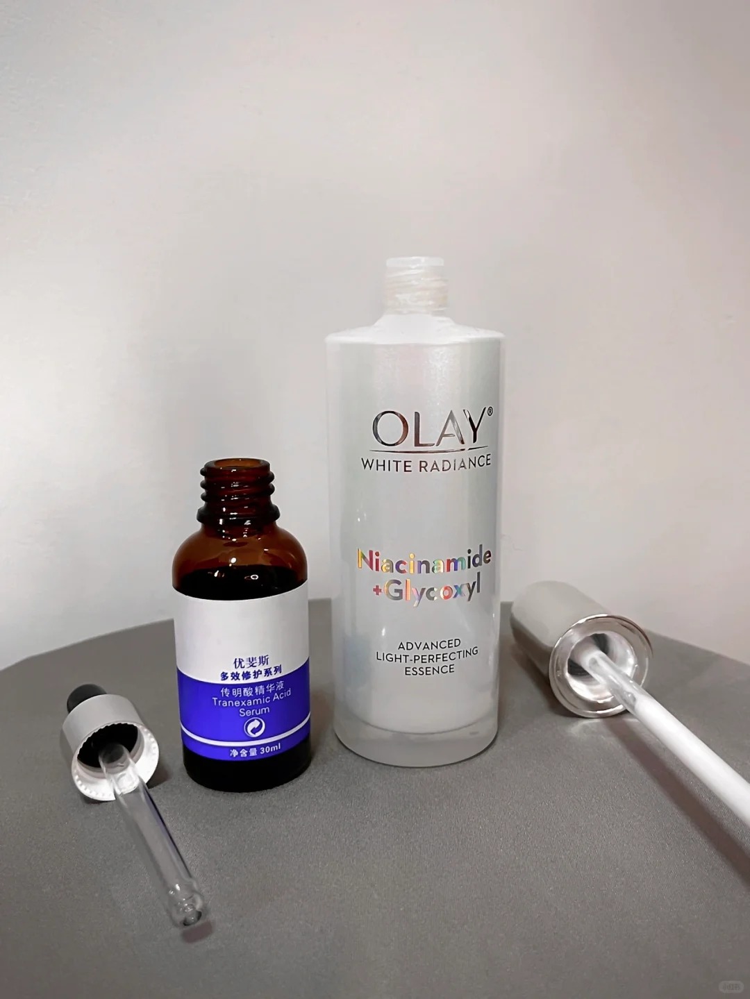 - 晚上:优裴斯氨甲环酸精华液 + 保湿 —— 淡斑修护不刺激