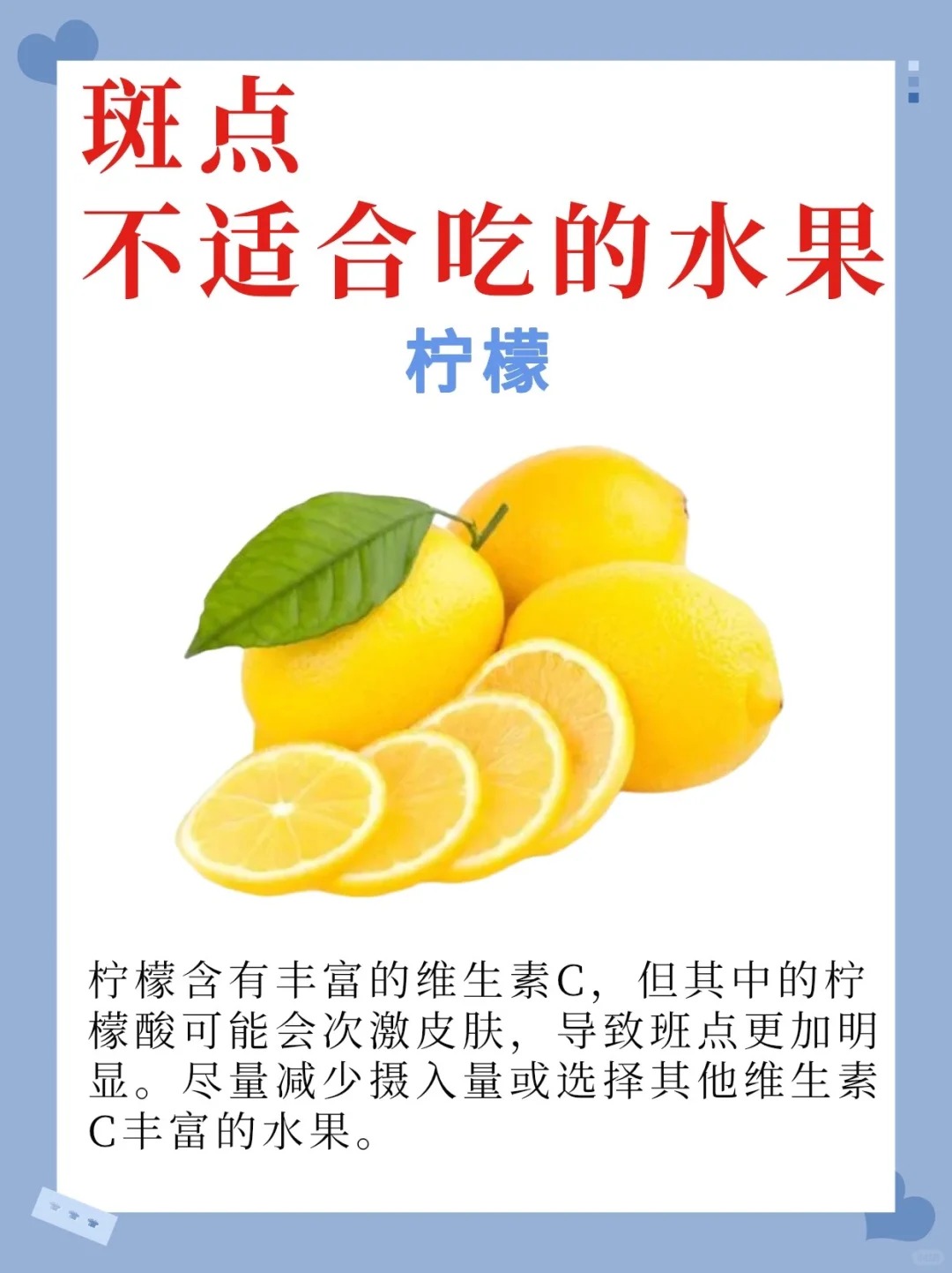 1. 柠檬:VC 浓度低还光敏,晒后反而长斑