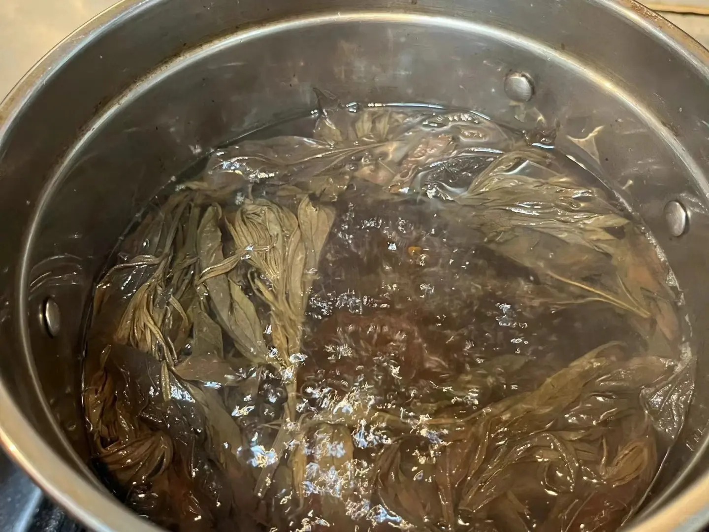 - 干艾叶 50g 煮 1000ml 水,煮 10 分钟后关火,放凉至室温;