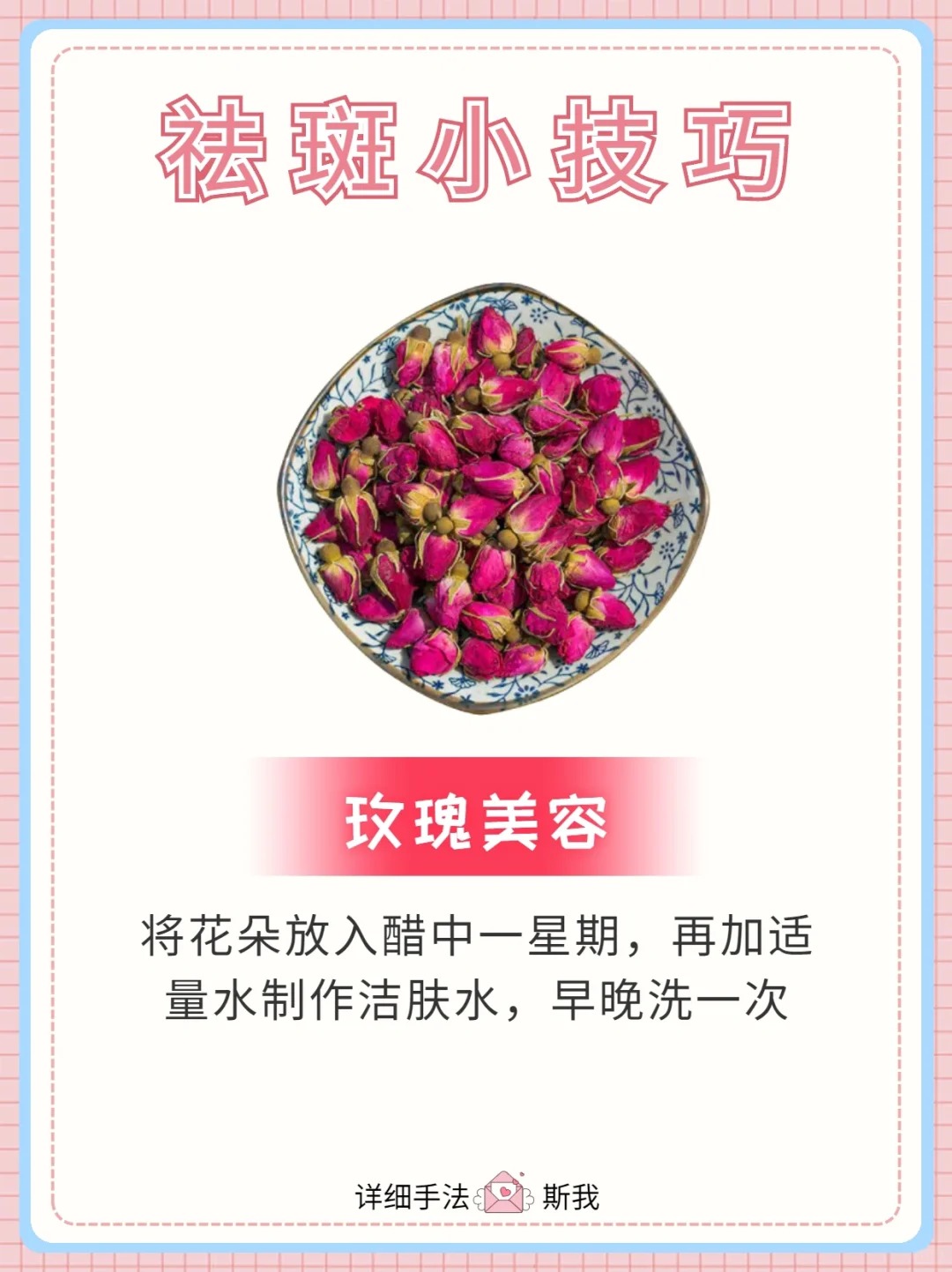 把白醋放回厨房(调味用),玫瑰用来泡茶或香薰(放松用),别再乱搭敷脸了;想祛斑,就选含有效淡斑成分的合规护肤品或正规医美,配合严格防晒 —— 记住:“厨房调料 + 芳香花草不是护肤品,偏方混搭不是淡斑方案”,科学护肤才是王道,别让离谱的混搭毁了你的脸。
