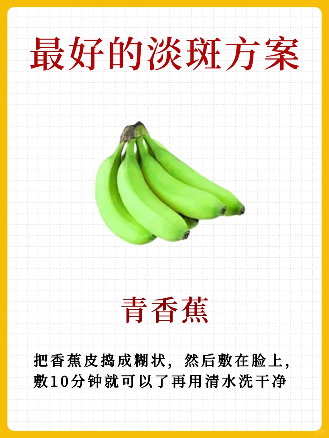 - 香蕉:剥皮直接吃,补充维生素和膳食纤维,或做成香蕉奶昔、香蕉蛋糕,别捣成泥敷斑;