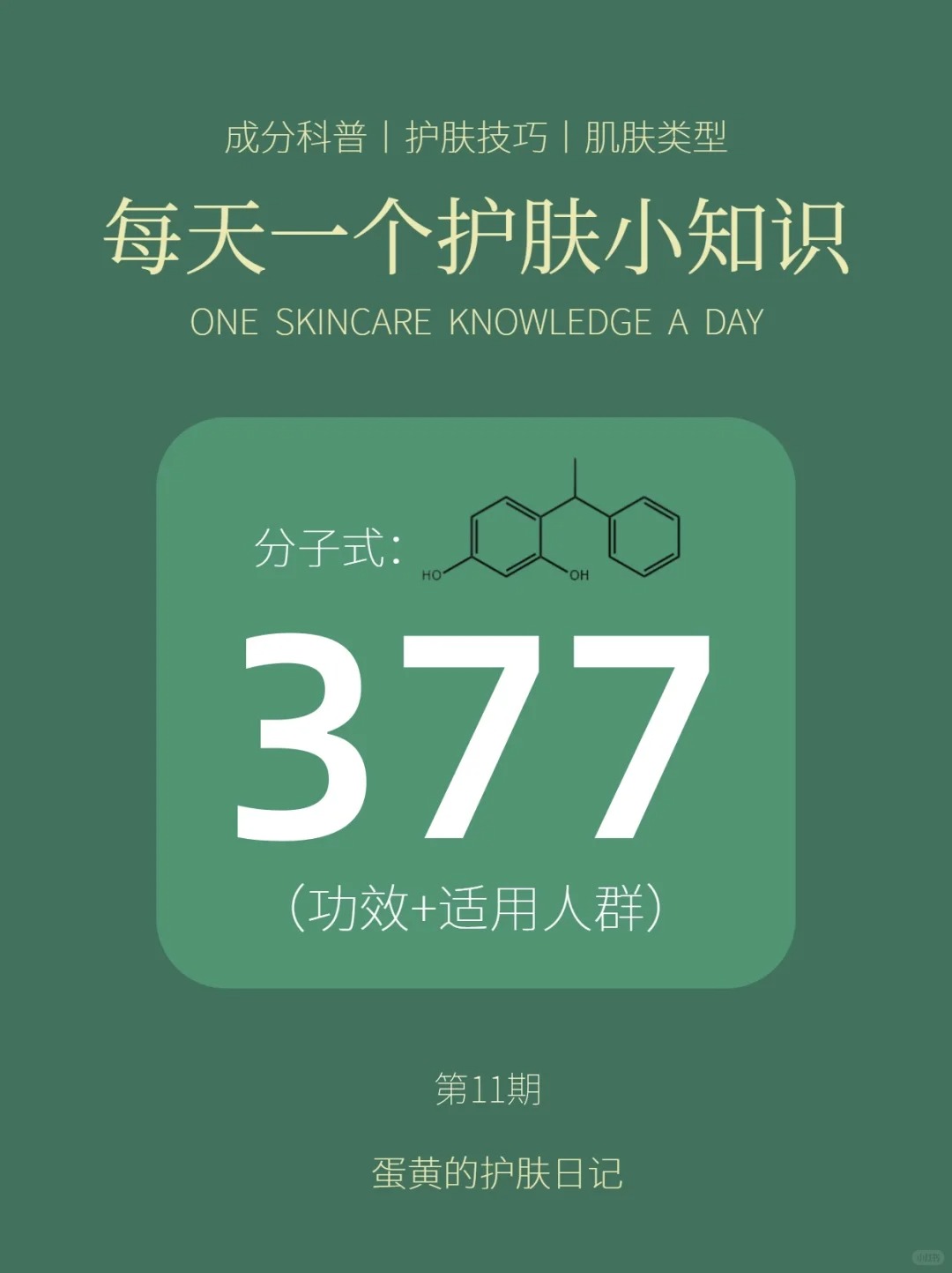 377,化学名为苯乙基间苯二酚,在美白界堪称 “明星成分”。它之所以能在美白领域大放异彩,是因为其分子结构与酪氨酸极为相似,就像一个精心伪装的 “冒牌货”,能抢先与酪氨酸酶结合,让酪氨酸酶无法正常催化酪氨酸转化为黑色素,从而从源头上减少了黑色素的生成,被誉为 “酪氨酸酶抑制剂天花板” 。有研究表明,377 对酪氨酸酶活性的抑制能力比曲酸高出约 3000 倍,美白能力十分显著。