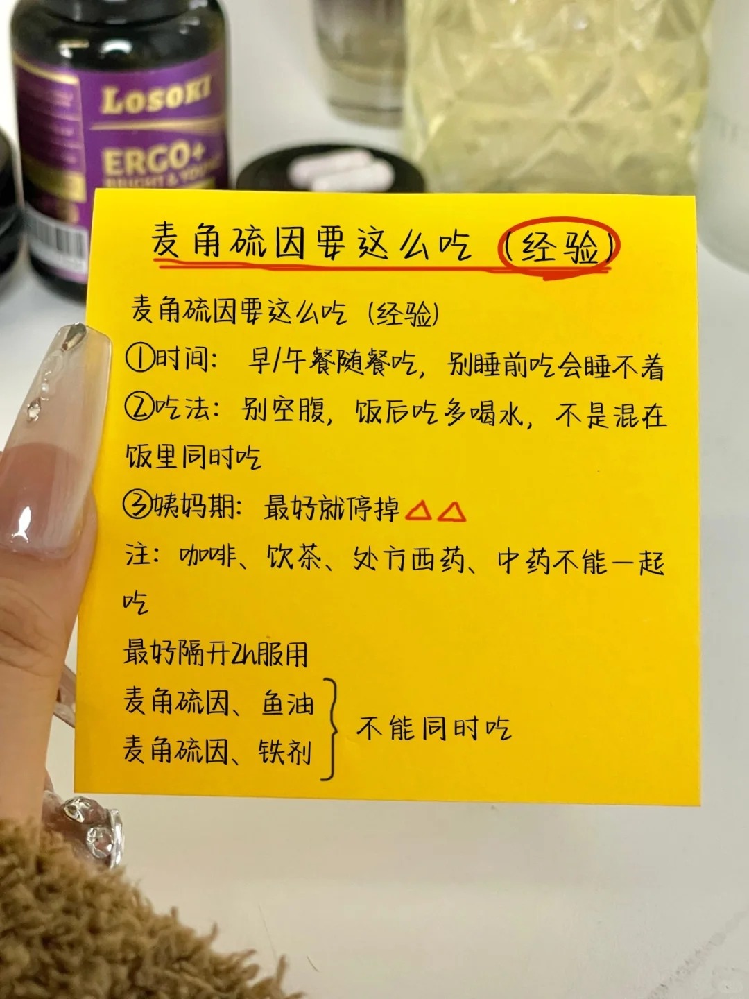 避免做法:不要把两者混在一杯水里吞服,也不要在睡前大量服用氨糖钙(可能增加夜尿次数),麦角硫因睡前服用反而有助于清除夜间代谢产生的自由基。