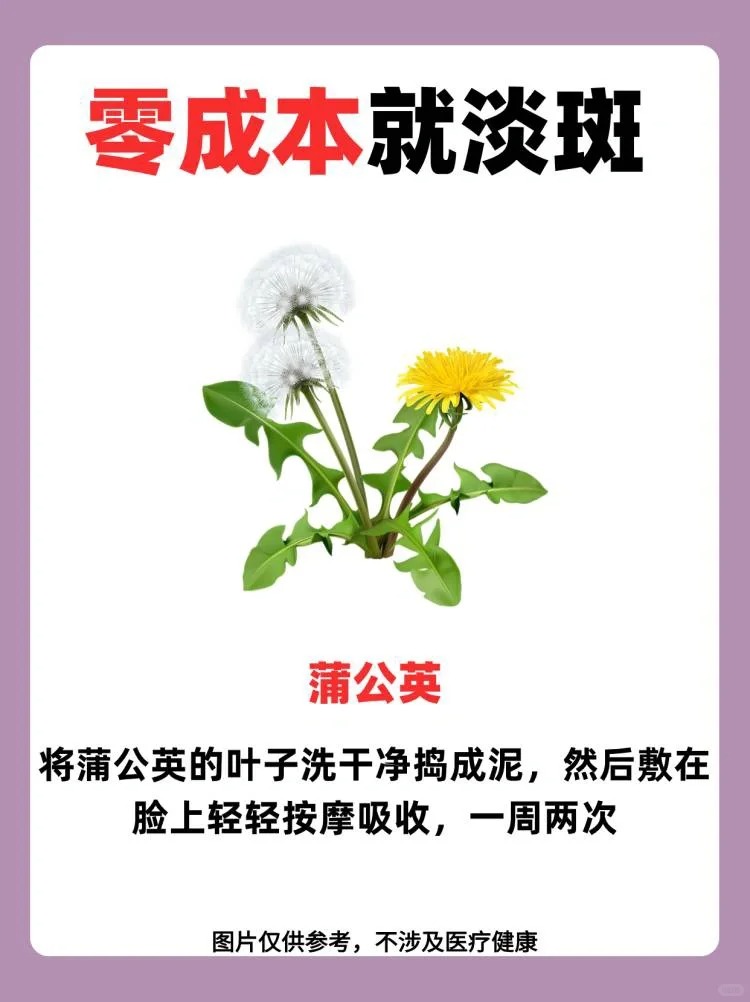 蒲公英中富含的黄酮类物质是辅助淡斑的关键: